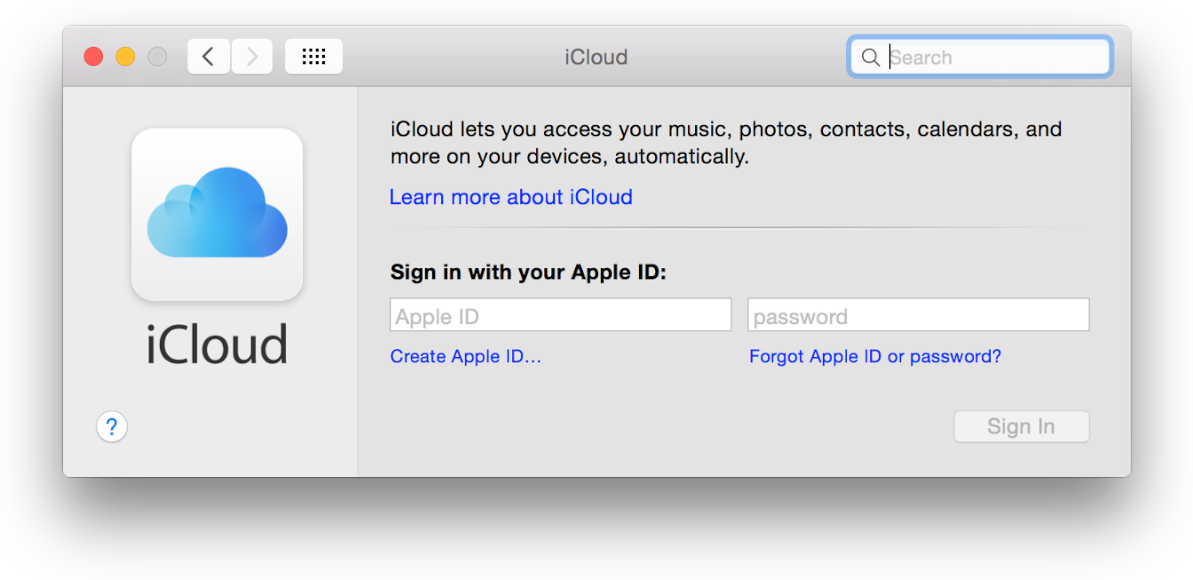 您需要一个iCloud帐户才能将记录保存到CloudKit容器中。您将在运行应用的设备上输入此iCloud帐户的凭据。如果您没有iCloud帐户,请创建一个可在开发期间使用的帐户。在Mac上,启动“系统偏好设置”并单击“iCloud”。单击Apple ID文本字段下的创建Apple ID,然后按照说明操作。